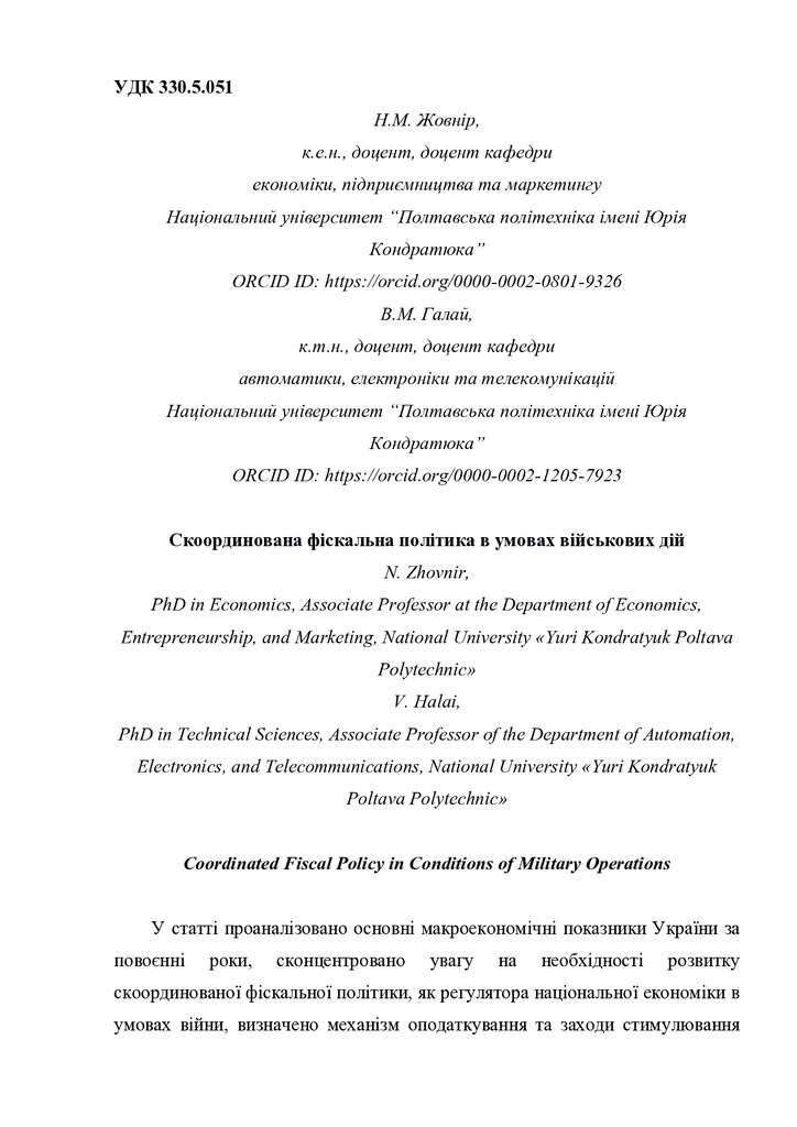 Стаття 2024/04/15Скоординована фіскальна політика в умовах військових дій
