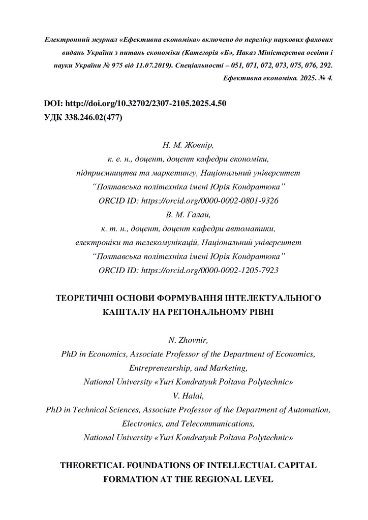 Стаття 2025/12/10Теоретичні основи формування інтелектуального капіталу на регіональному рівні