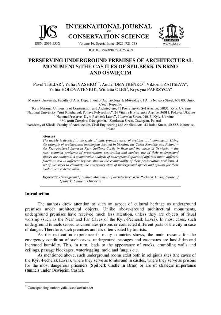 Preserving Underground Premises of Architectural Monuments: the Castles of Špilberk in Brno and Oświęcim