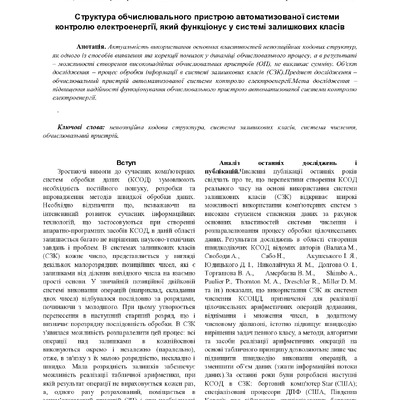 Стаття 2021/06/07Структура обчислювального пристрою автоматизованої системи контролю електроенергії, який функціонує у системі залишкових класів