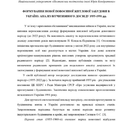 Стаття 2026/01/19Фази відновлення при формуванні нової повоєнної житлової забудови в Україні