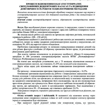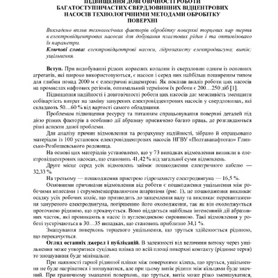 Стаття 2020/02/28Процеси відновлення в багатоступінчатих свердловинних відцентрових насосах та підвищення довговічності їх роботи технологічними методами