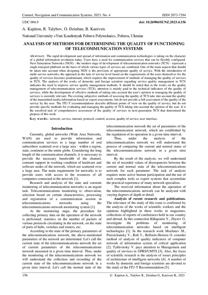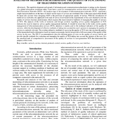 2025/03/13Analysis of methods for determining the quality of functioning of telecommunication systems