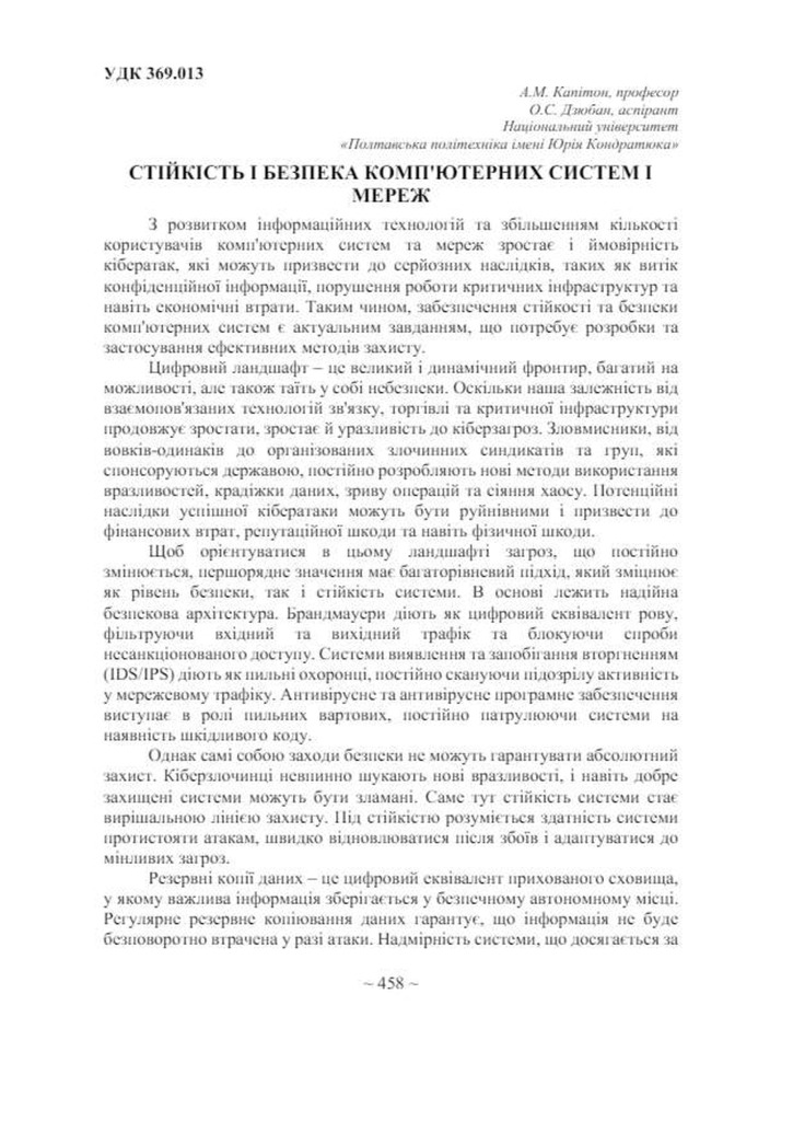 Стаття 2024/06/20Стійкість і безпека комп'ютерних систем і мереж