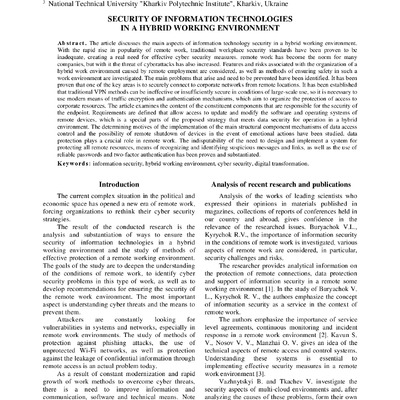 Стаття 2024/12/06Security of information technologies in a hybrid working environment