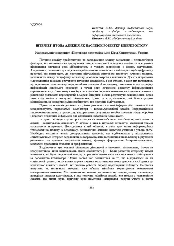 Інтернет-ігрова адикція як наслідок розвитку кіберпростору
