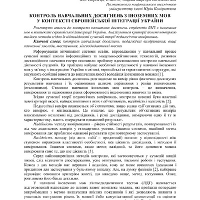Стаття 2018/07/11Контроль навчальних досягнень з іноземних мов у контексті європейської інтеграції України