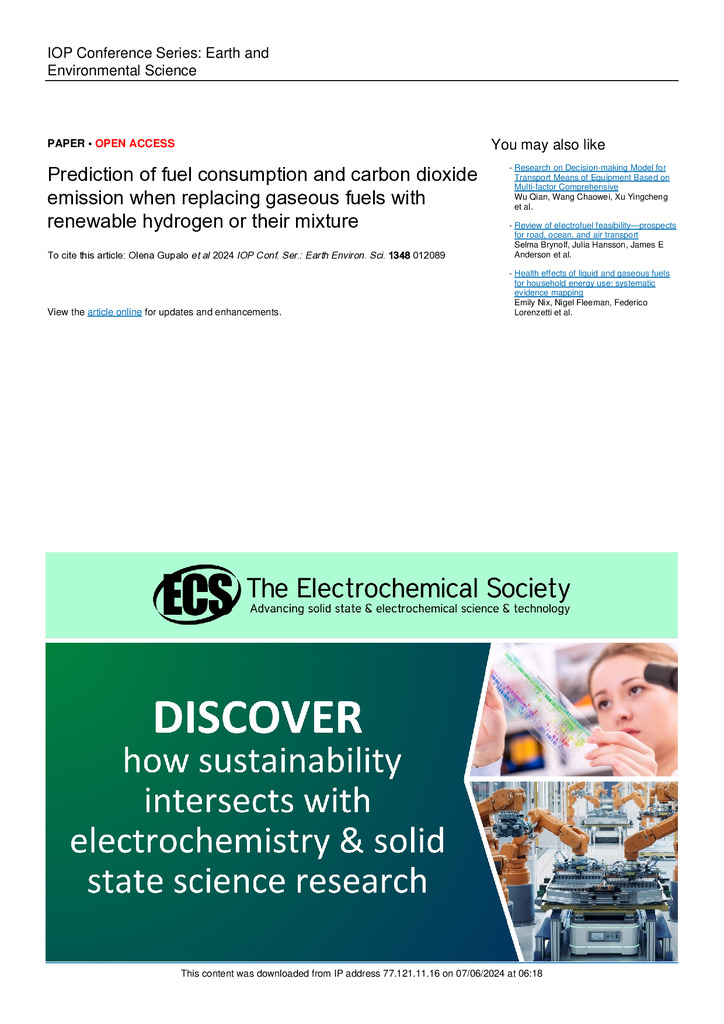 2024/09/05Prediction of fuel consumption and carbon dioxide emission when replacing gaseous fuels with renewable hydrogen or their mixture