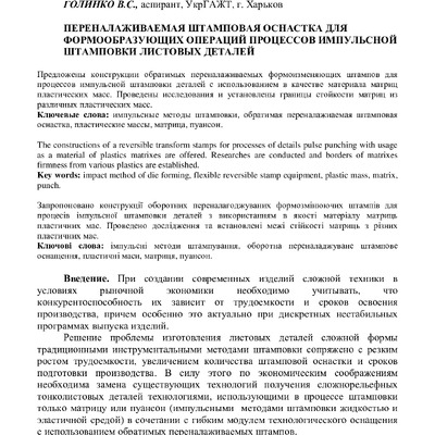 Предложены конструкции обратимых переналаживаемых формоизменяющих штампов для процессов импульсно...