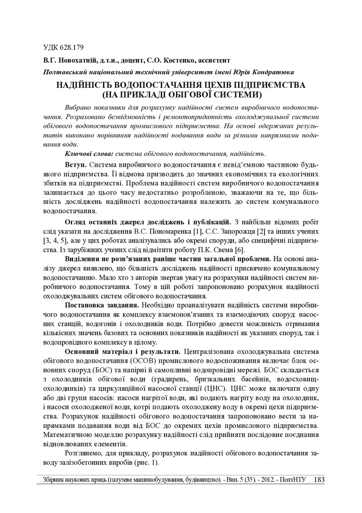Надійність водопостачання цехів підприємства (на прикладі обігової системи)
