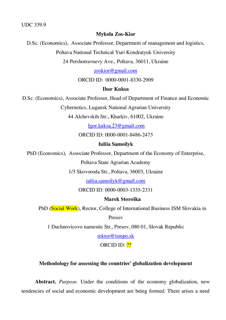 Розроблено та обґрунтовано методологічний підхід щодо оцінки рівня глобалізаційного розвитку краї...