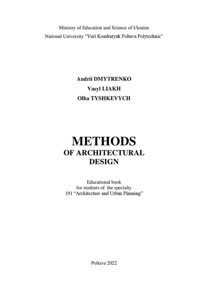 The educational book examines the theoretical foundations of architectural design: the concept of architecture as a system, the main hierarchical levels and design objects, the peculiarities of the...