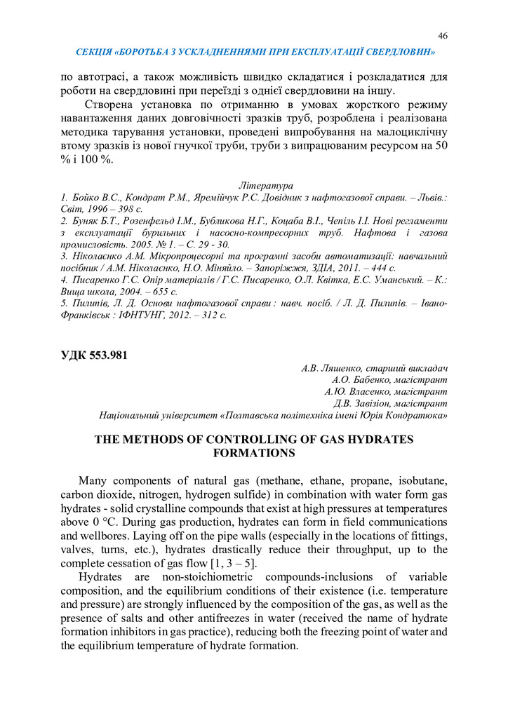 The article deals with laws of occurrence of gas hydrates in mining wells and prevention of their...
