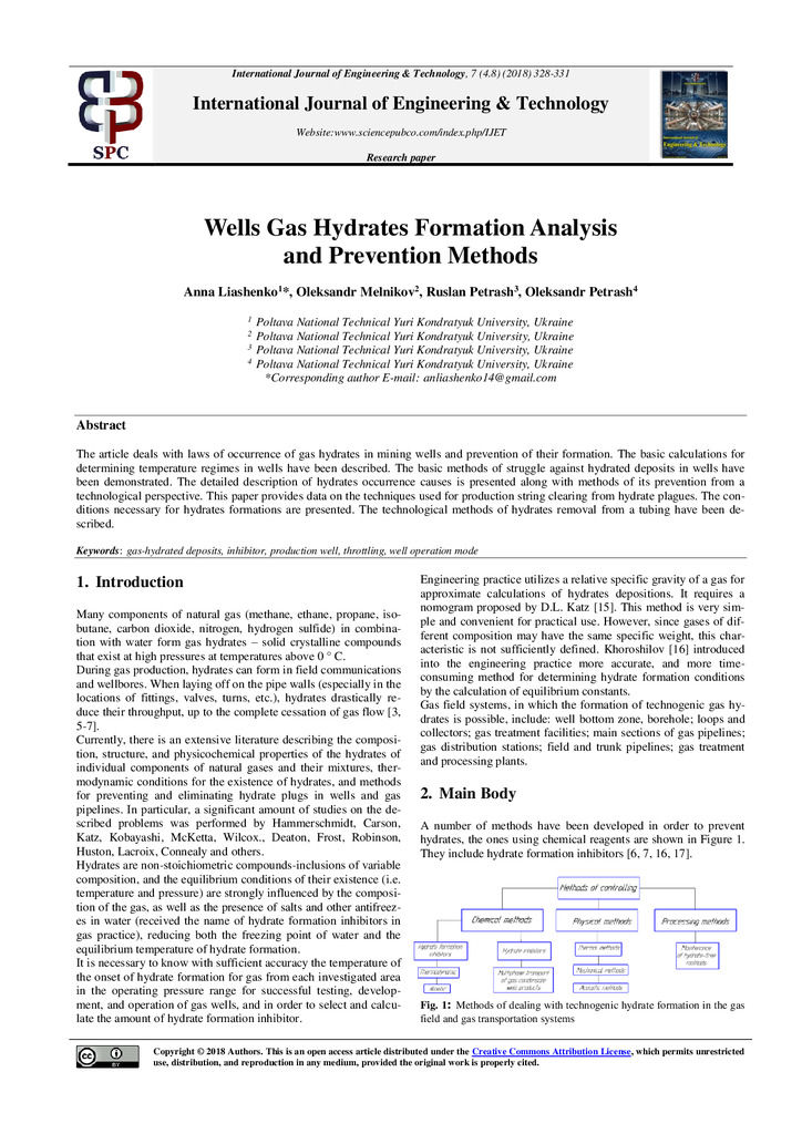 2022/01/20Wells gas hydrates formation analysis and prevention methods