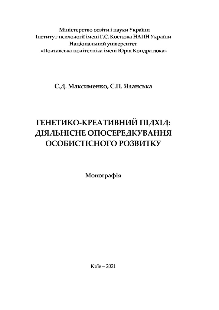2021/12/13Генетико-креативний підхід: діяльнісне опосередкування особистісного розвитку