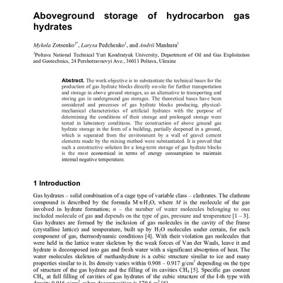 Стаття 2020/07/10Aboveground storage of hydrocarbon gas hydrates