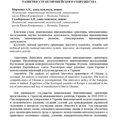 Выполнен анализ национальных инновационных ориентиров Украины. Пронализирована результативность ...