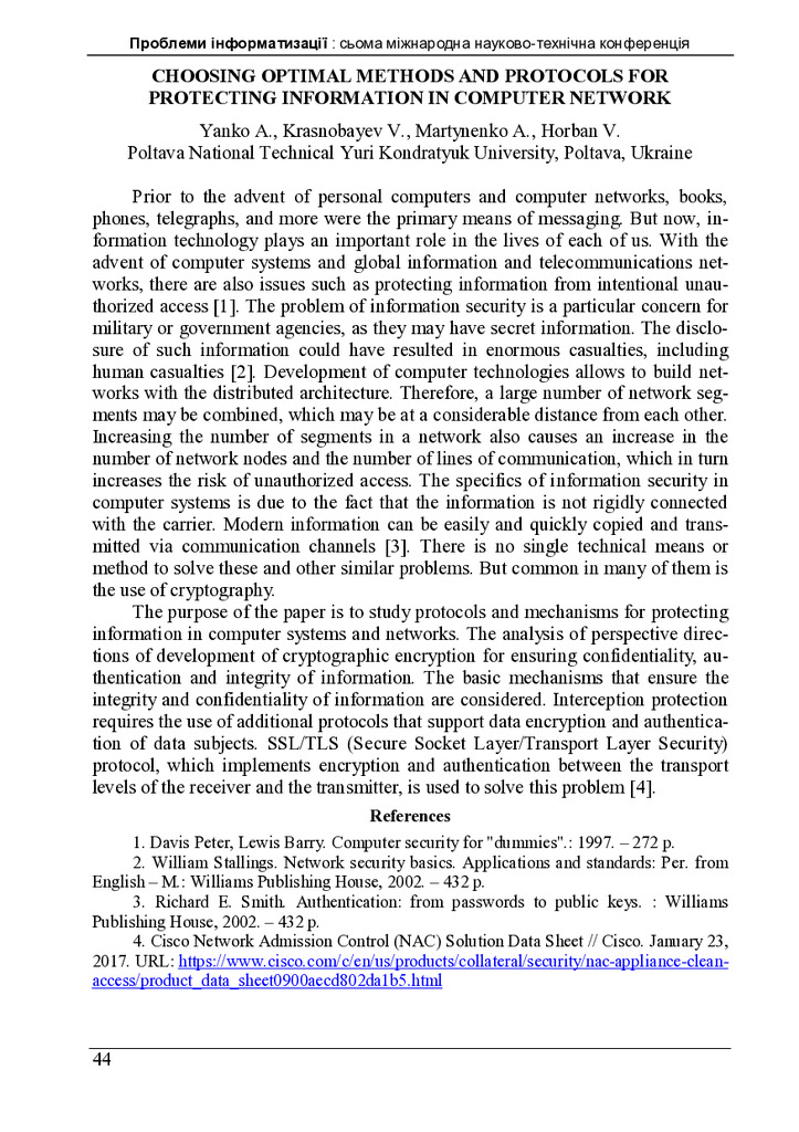 Доповідь спрямована на зміцнення інформаційної безпеки на основі забезпечення надійності, конфіде...