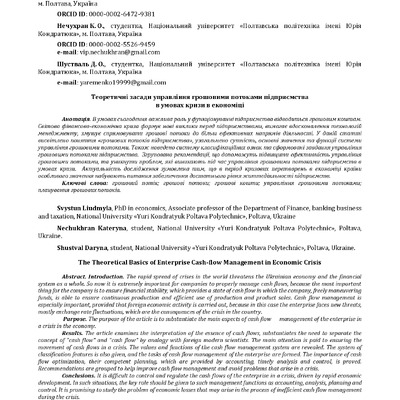 2020/12/16Теоретичні засади управління грошовими потоками підприємства в умовах кризи в економіці