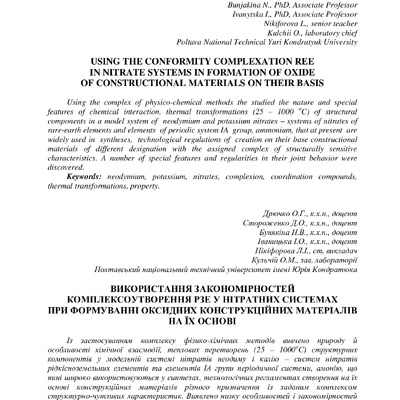 Стаття 2018/12/07Using the conformity complexation REE in nitrate systems in formationof oxide of costructional materials on their basis