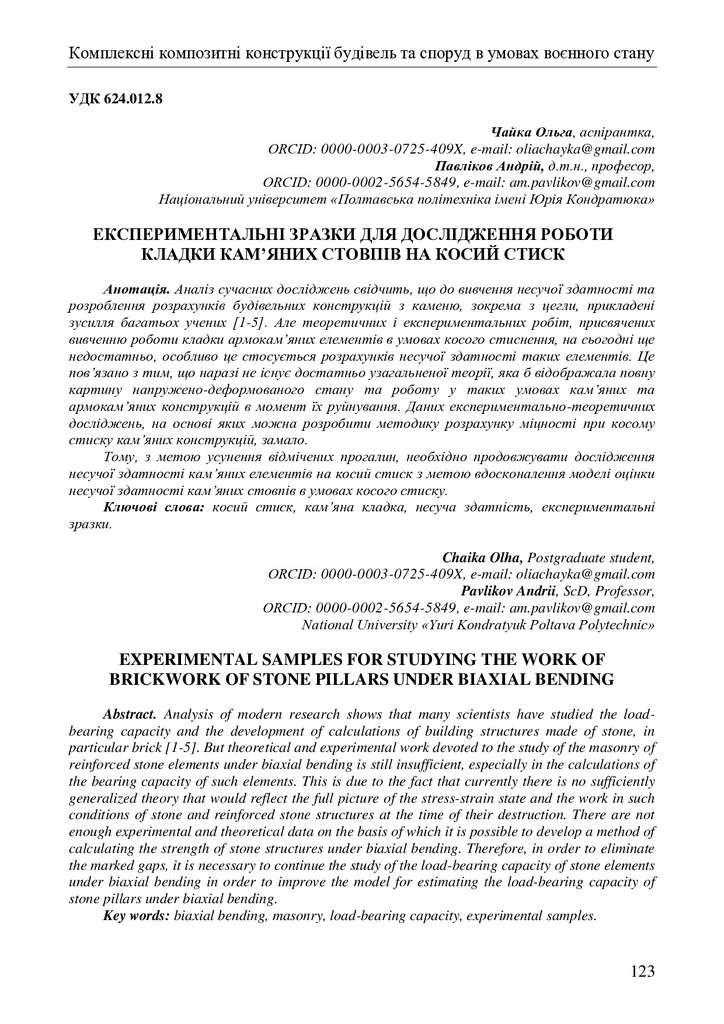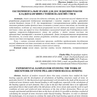 2023/06/29Експериментальні зразки для дослідження роботи кладки кам’яних стовпів на косий стиск
