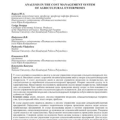 Стаття 2021/11/18Аналіз в системі управління витратами сільськогосподарських підприємств