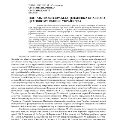 Стаття 2023/11/27Постать професора М. І. Степаненка в науково-духовному обширі українства