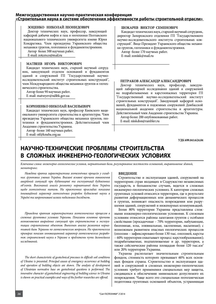 Научно-технические проблемы строительства в сложных инженерно-геологических условиях