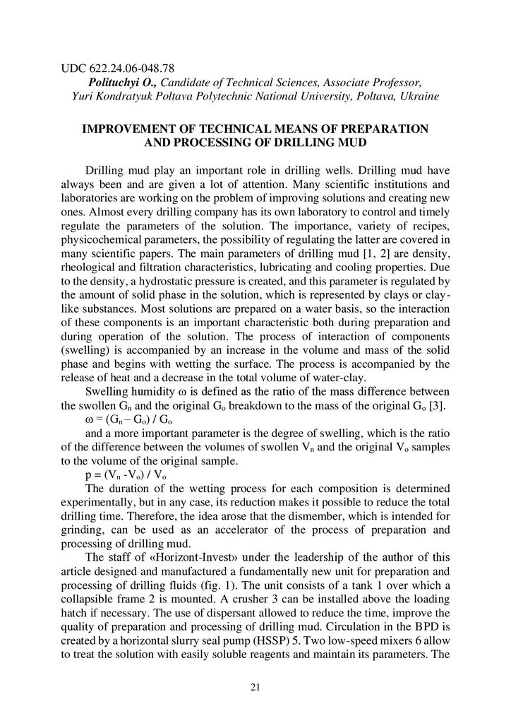 2024/04/16Вдосконалення технічних засобів приготування та обробки бурових розчинів