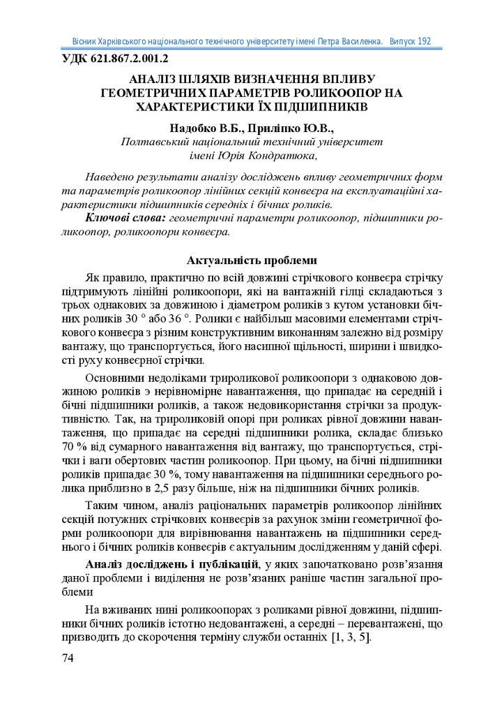 Аналіз шляхів визначення впливу геометричних параметрів роликоопор на характеристики їх підшипників