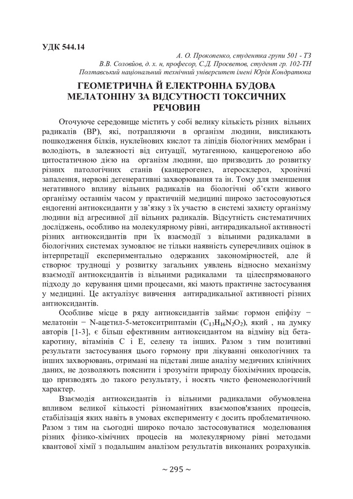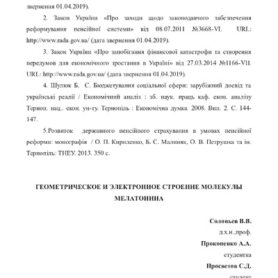 Стаття 2020/06/30Геометрическое и электронное строение молекулы мелатонина