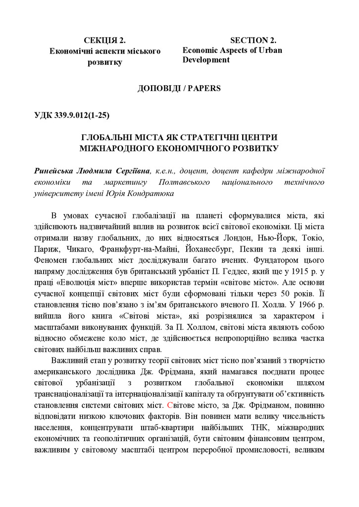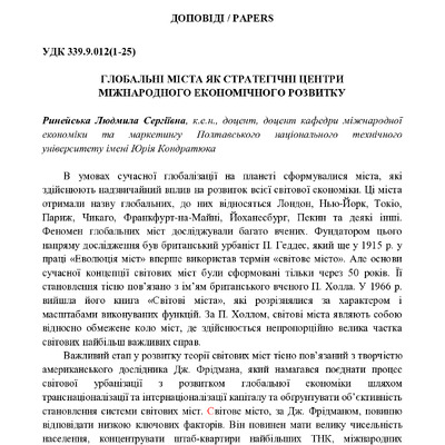 Стаття 2019/06/05Глобальні міста як стратегічні центри міжнародного економічного розвитку