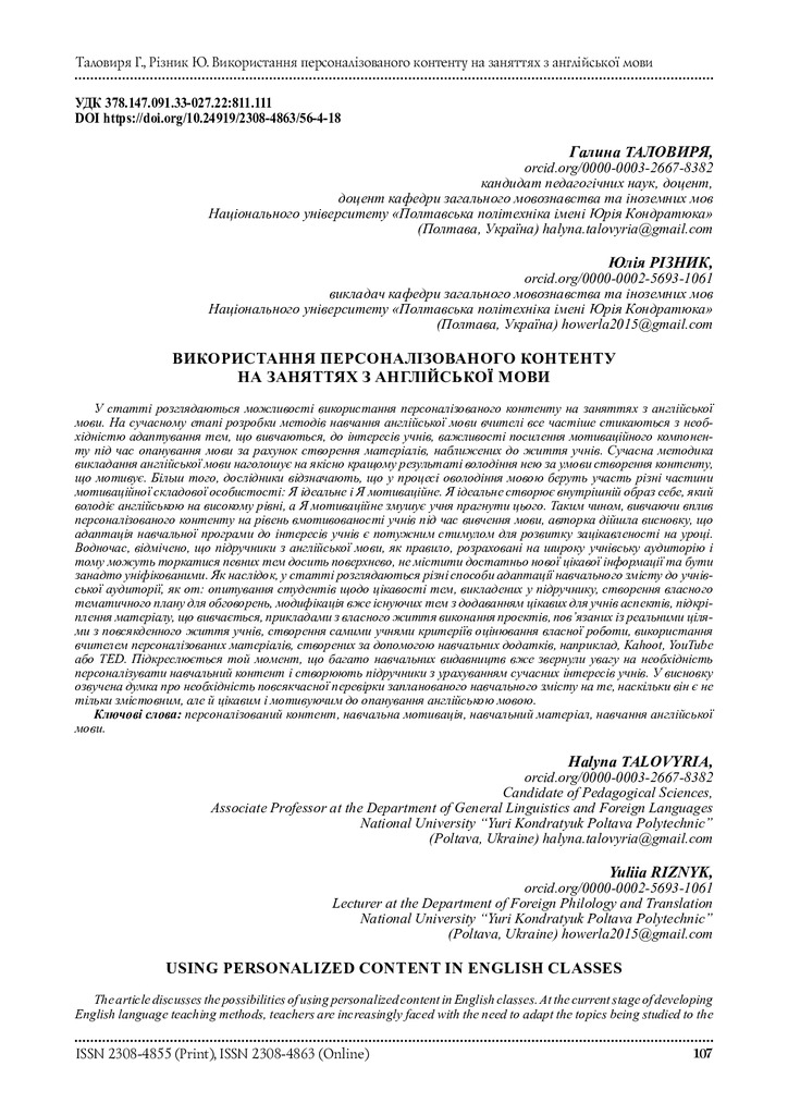2023/08/11Використання персоналізованого контенту на заняттях з англійської мови