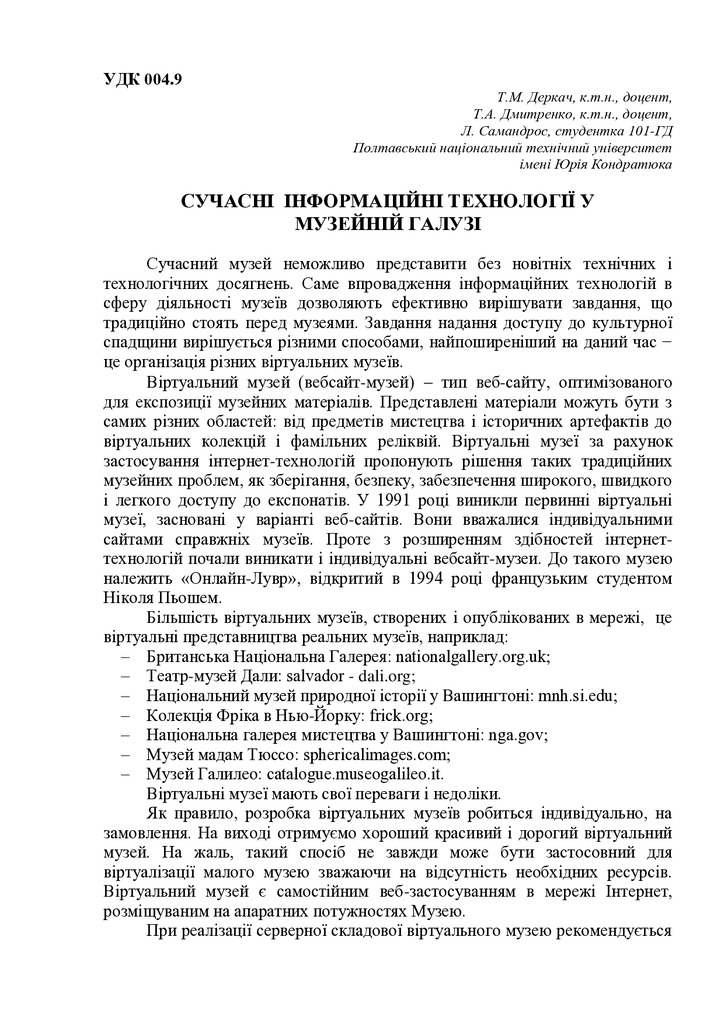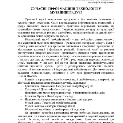 Сучасні інформаційні технології у музейній галузі
