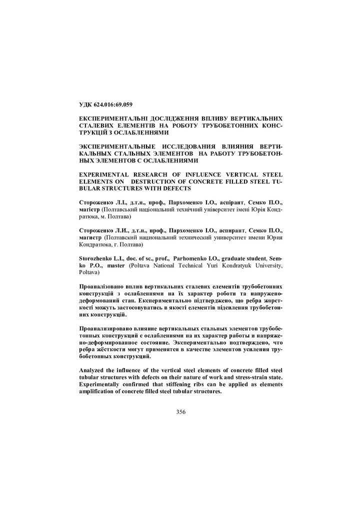 Проаналізовано вплив вертикальних сталевих елементів трубобетонних конструкцій з ослабленнями на ...