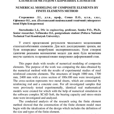 У статті представлені результати чисельного моделювання сталезалізобетонних елементів. Для всіх д...