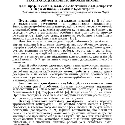 2020/07/23Експериментальні дослідження способів підсилення трубобетонних конструкцій з експлуатаційними пошкодженнями