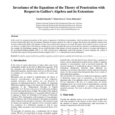 Стаття 2019/09/24Invariance of the Equations of the Theory of Penetration with Respect to Galileo's Algebra and its Extensions