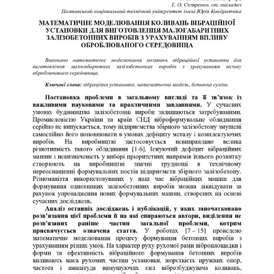 Виконано математичне моделювання коливань вібраційної установки для виготовлення малогабаритних з...