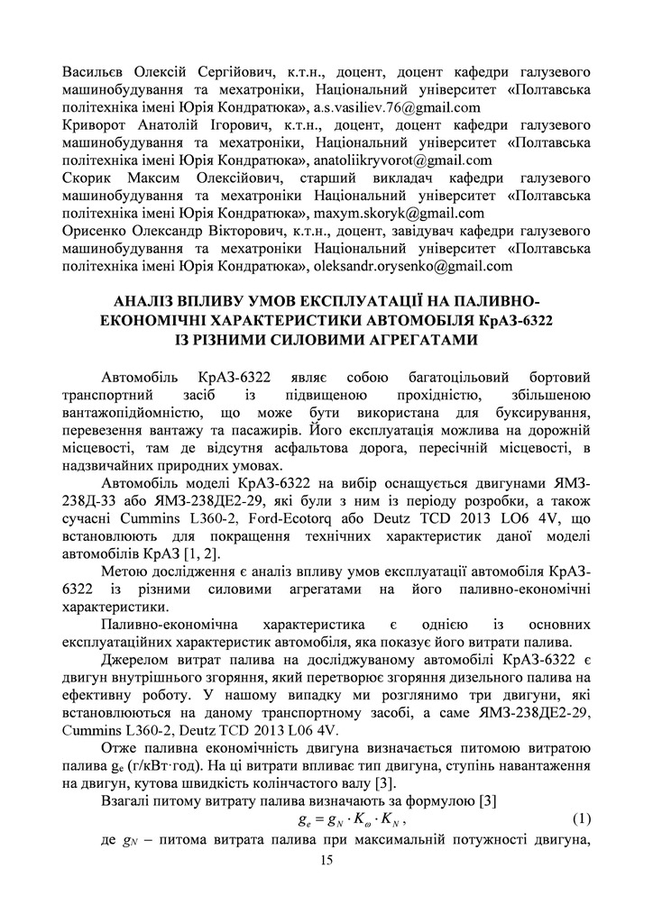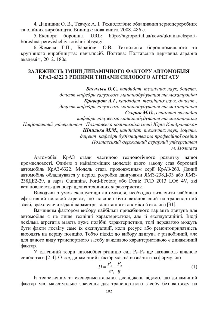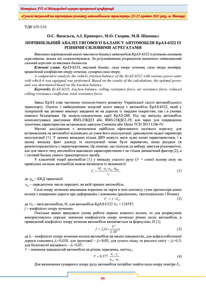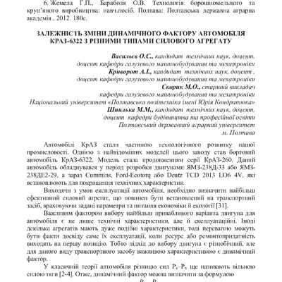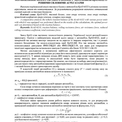 Стаття 2024/03/29Порівняльний аналіз тягового балансу автомобіля КрАЗ-6322 із різними силовими агрегатами