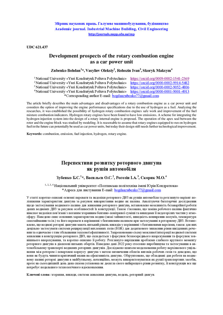 Стаття 2024/04/17Development prospects of the rotary combustion engine as a car power unit