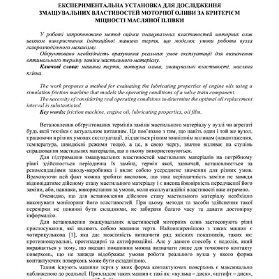 Стаття 2025/06/19Експериментальна установка для дослідження змащувальних властивостей моторної оливи за критерієм міцності масляної плівки