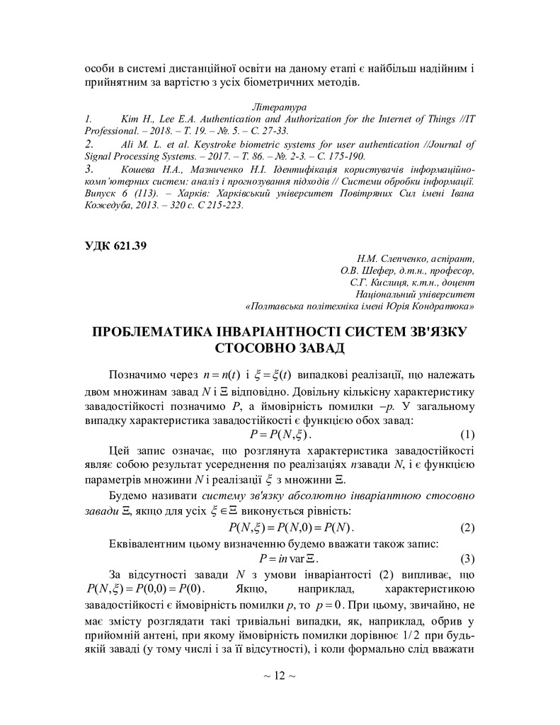 Проблематика інваріантності систем зв'язку стосовно завад