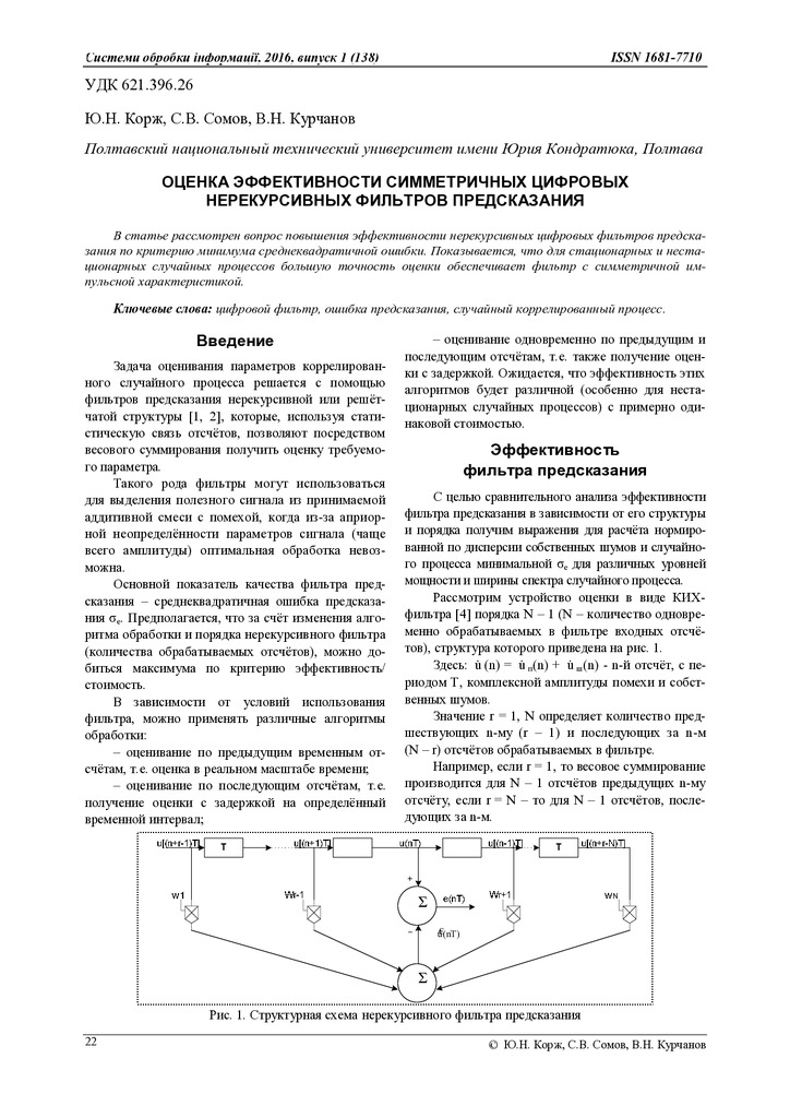 Стаття 2018/10/09Оценка эффективности симметричных цифровых нерекурсивных фильтров предсказания