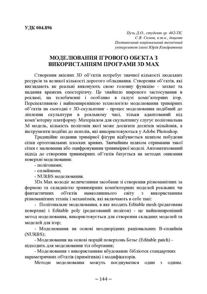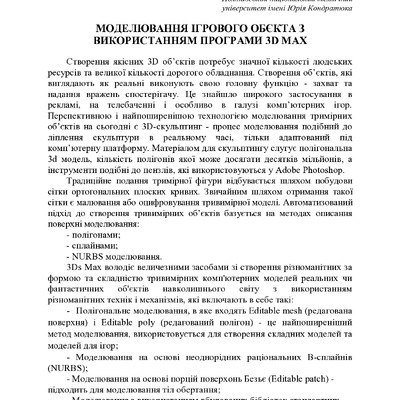 Стаття 2018/10/12Моделювання ігрового обєкта з використанням програми 3D MAX