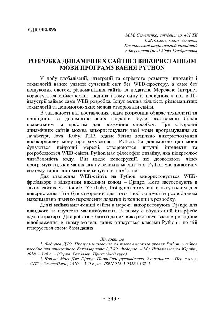 Стаття 2019/06/17Розробка динамічних сайтів з використанням мови програмування PYTHON