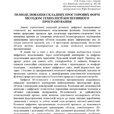 3D-моделювання складних просторових форм методом технології когнітивного програмування