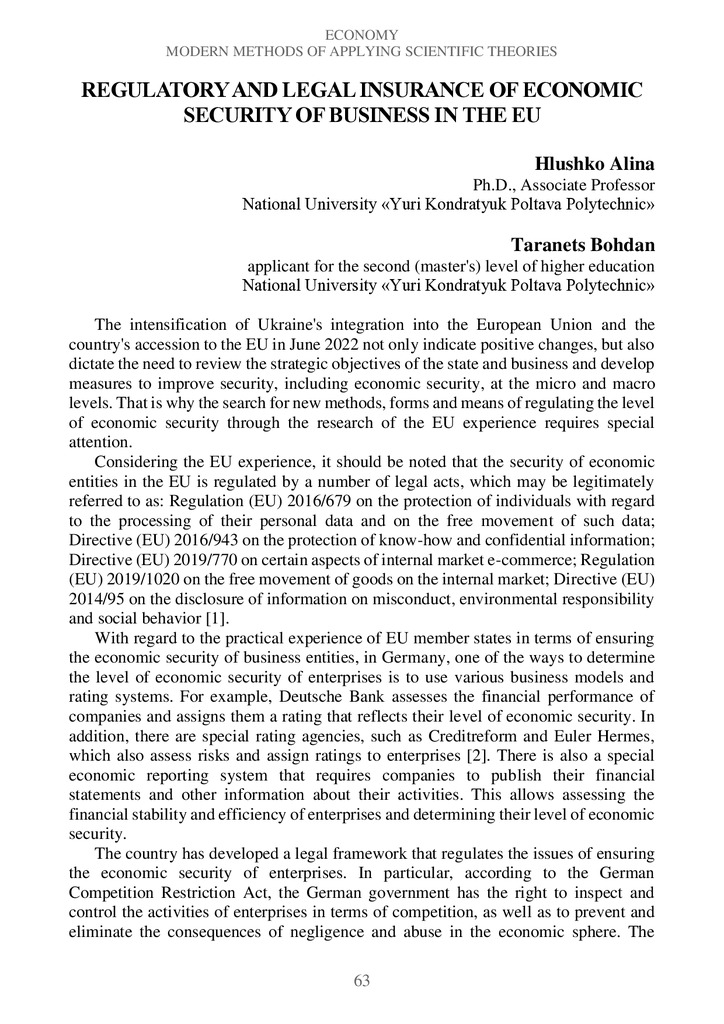 Стаття 2024/04/26Інституційне забезпечення економічної безпеки суб’єктів господарювання: досвід ЄС для України