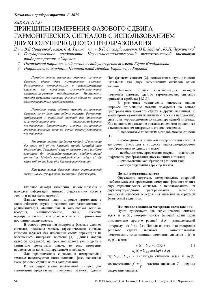 The article analyzes the known methods of measuring the phase shift of two harmonic signals ident...