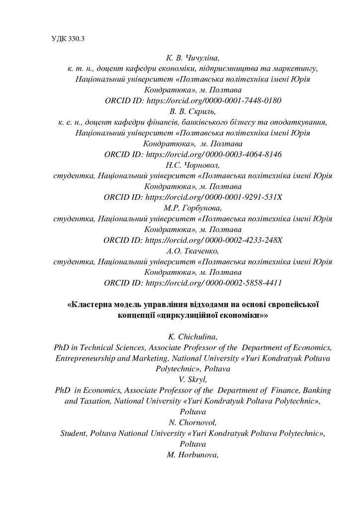Стаття 2022/11/28Кластерна модель управління відходами на основі європейської концепції «циркуляційної економіки
